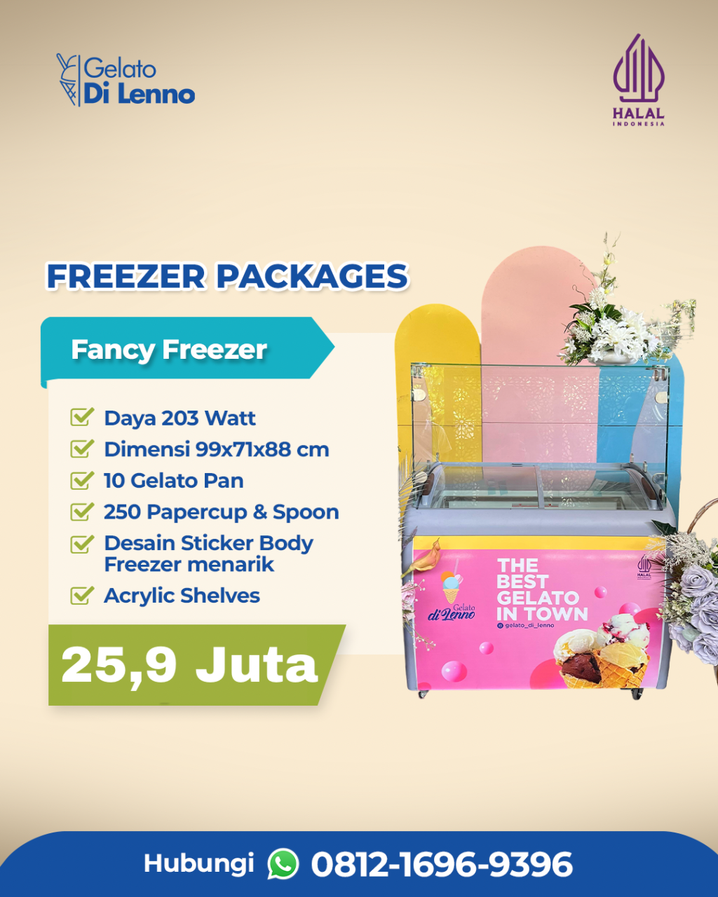 Paket kemitraan sudah termasuk dengan freezer, gelato dan peralatan pendukung, sehingga sudah siap untuk jualan