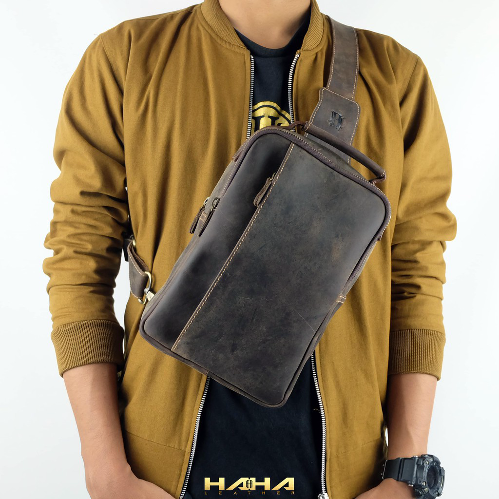 [HAHA] Tas COOPER Kulit Sapi Slingbag Selempang Pria Dada Waistbag